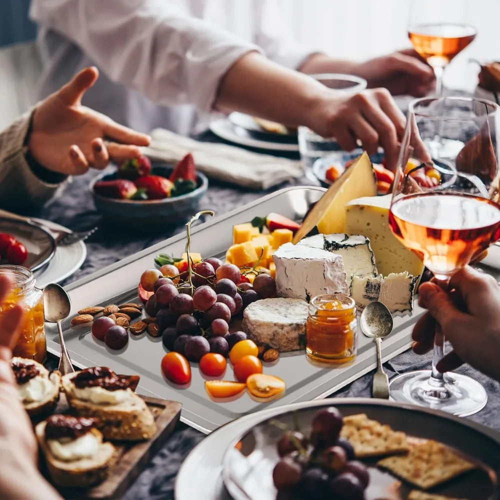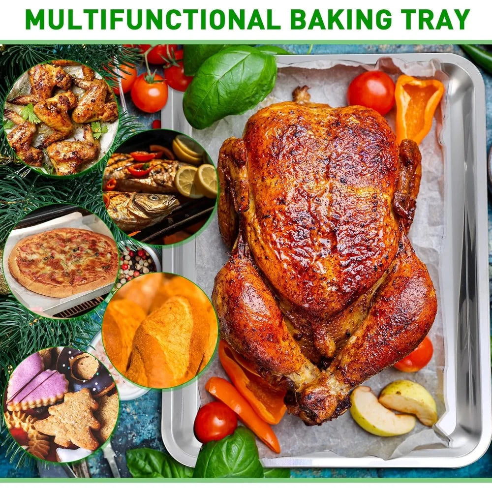 - Each pan measures 18 x 13 x 0.8 inches, giving you ample space for cookies, sheet-pan meals, or roasted veggies.