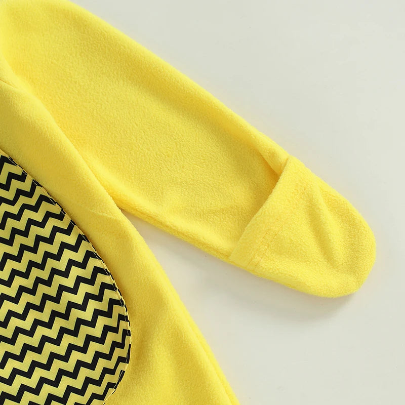 Your little one will steal the show in this adorable bee hooded footie jumpsuit, a playful must-have for cosplays, Halloween, and cute everyday moments.