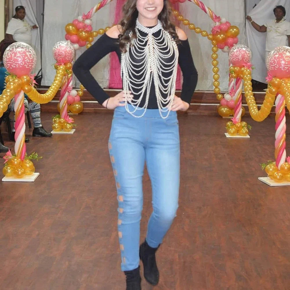 Ccbodily Pearl Shawl Necklaces Sweater Chain For Wedding