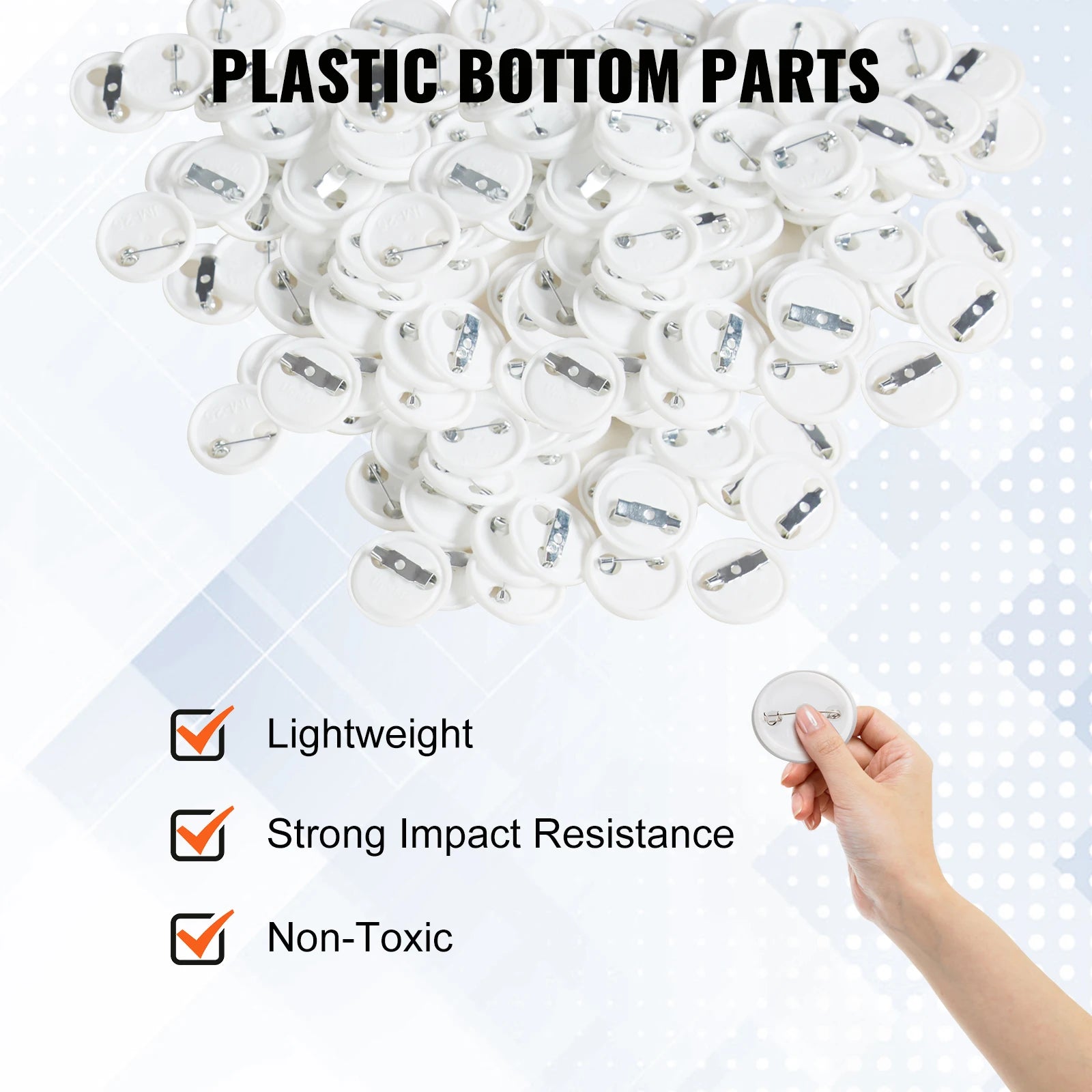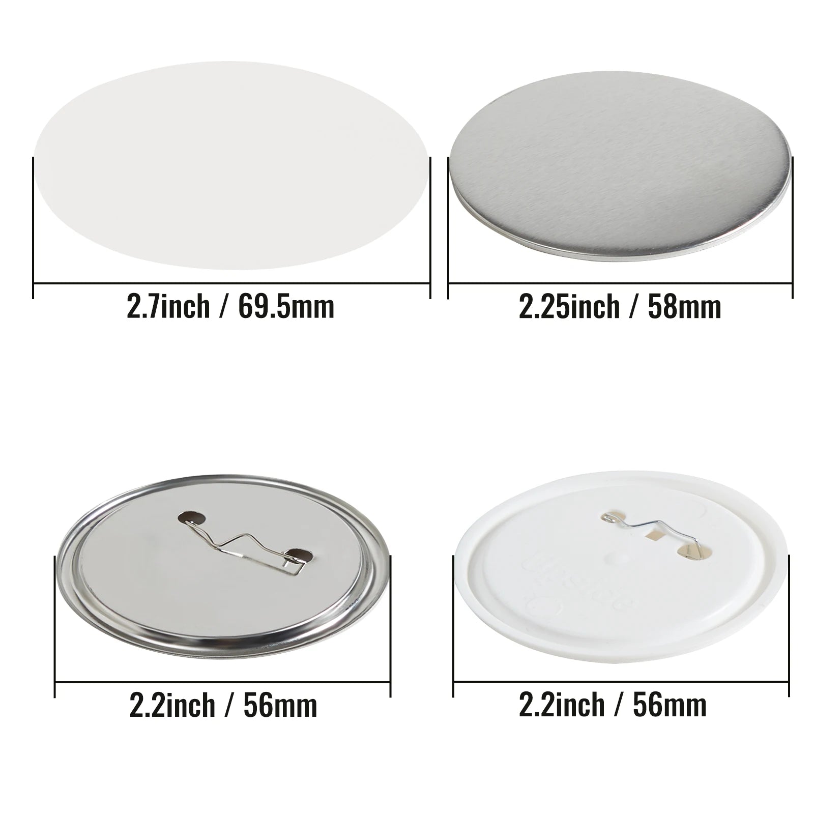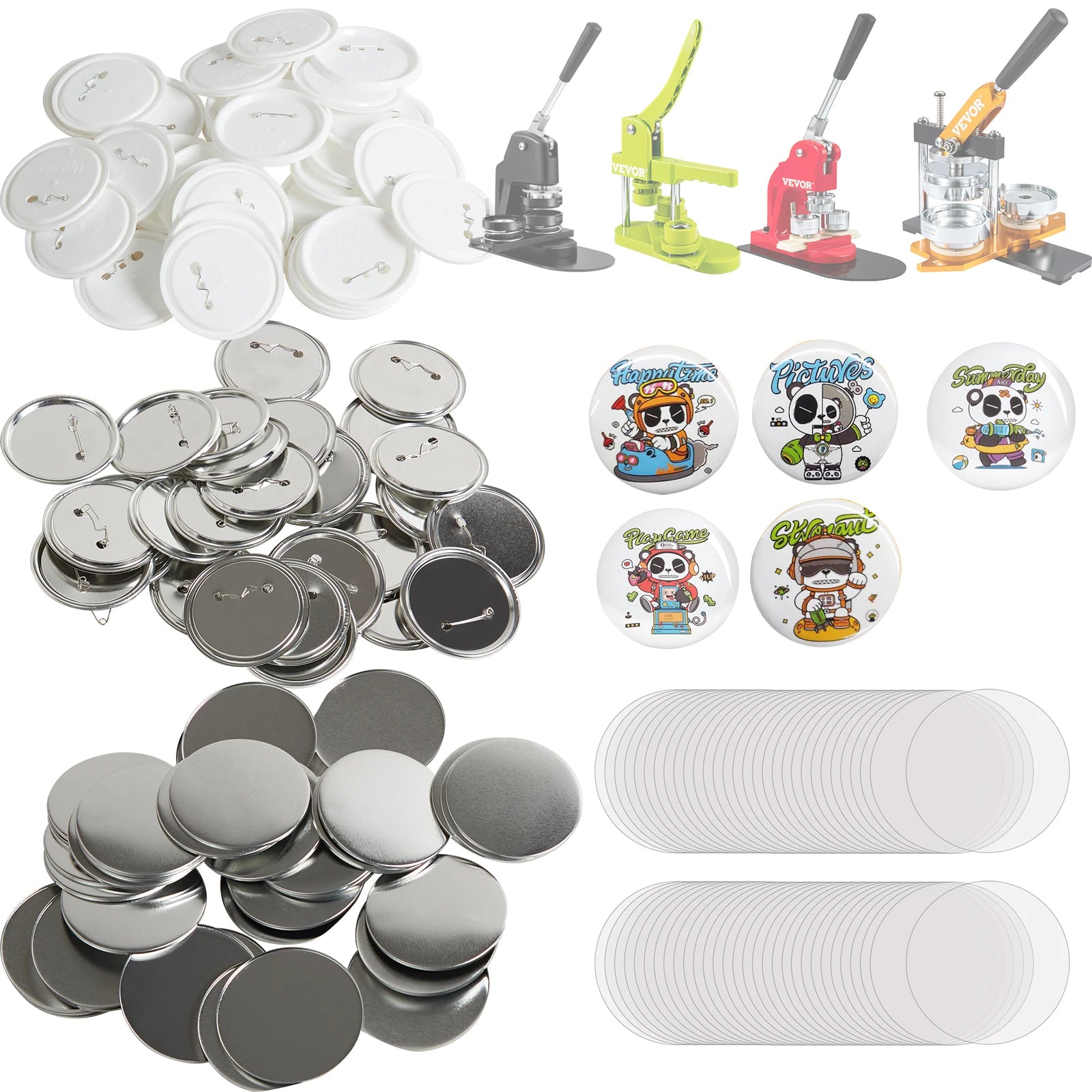 - Complete kit: 100–499 pieces per kit, including metal covers, metal bottoms, plastic bottoms, and transparent films to craft multiple badges.
